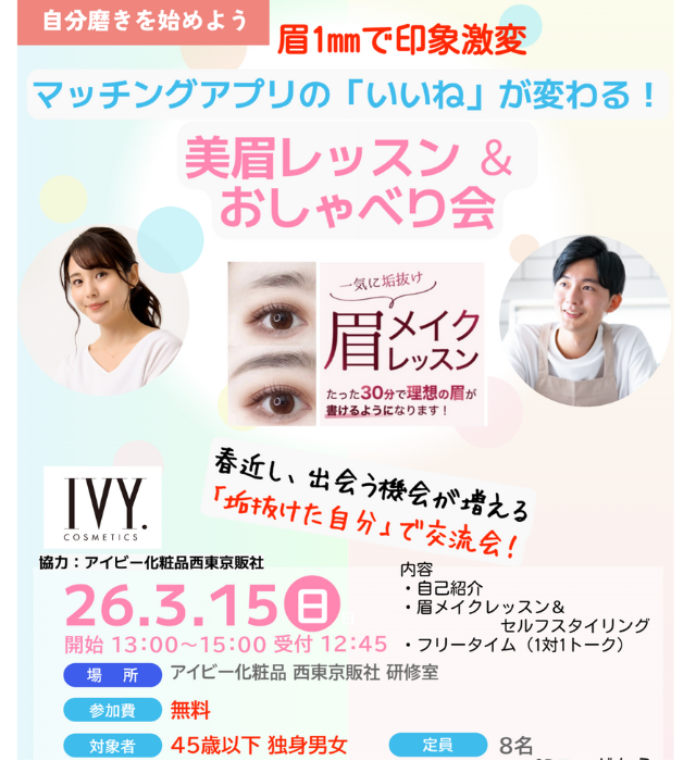 「今の自分より、ちょっといいかも」と思える自分になって、素敵なご縁を掴みに行きませんか?少人数制のアットホームな会ですので、お一人様でもお気軽にご参加くださいね。